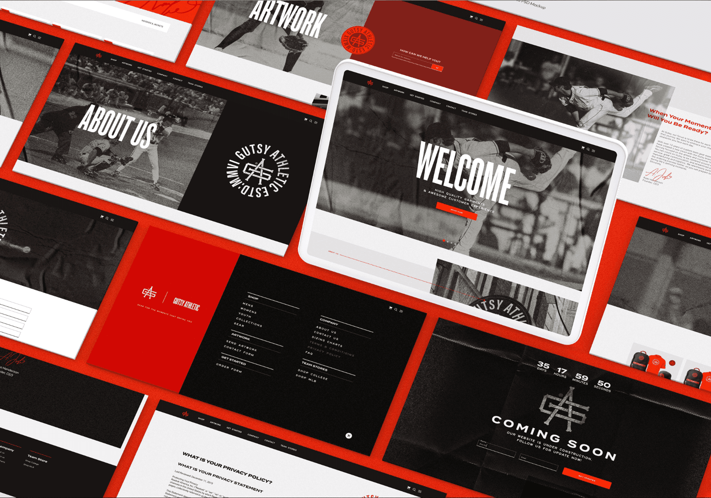 Gutsy Athletic™ approached me with the goal to become a force in baseball team sales through building trust & showing passion for baseball to their customers. We created a more cohesive messaging and design language across their storefront. I also ensured that their brand was fluid through their website and promotional materials.